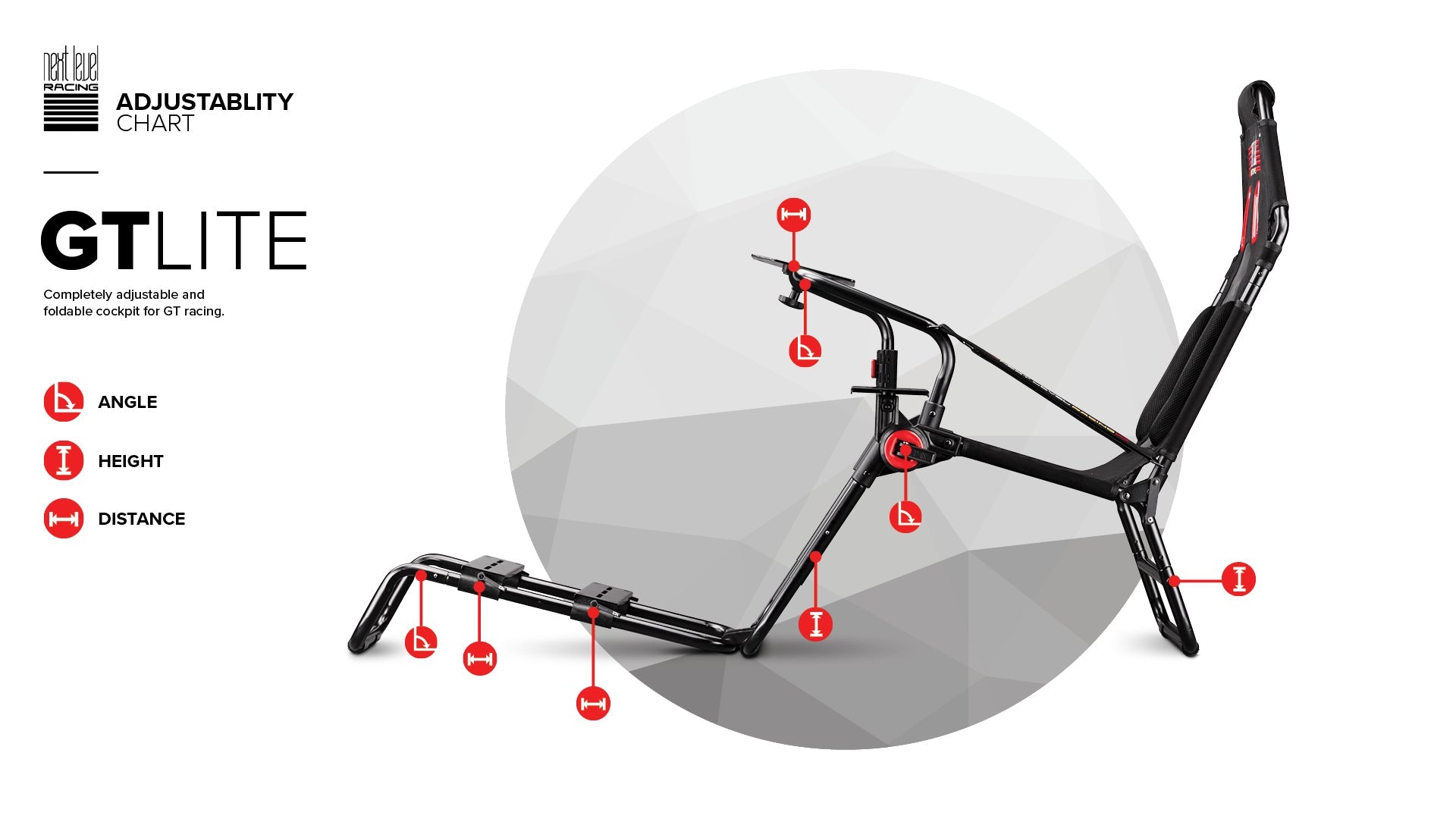 - Adjustable wheel, gear shifter and pedal positions and angle