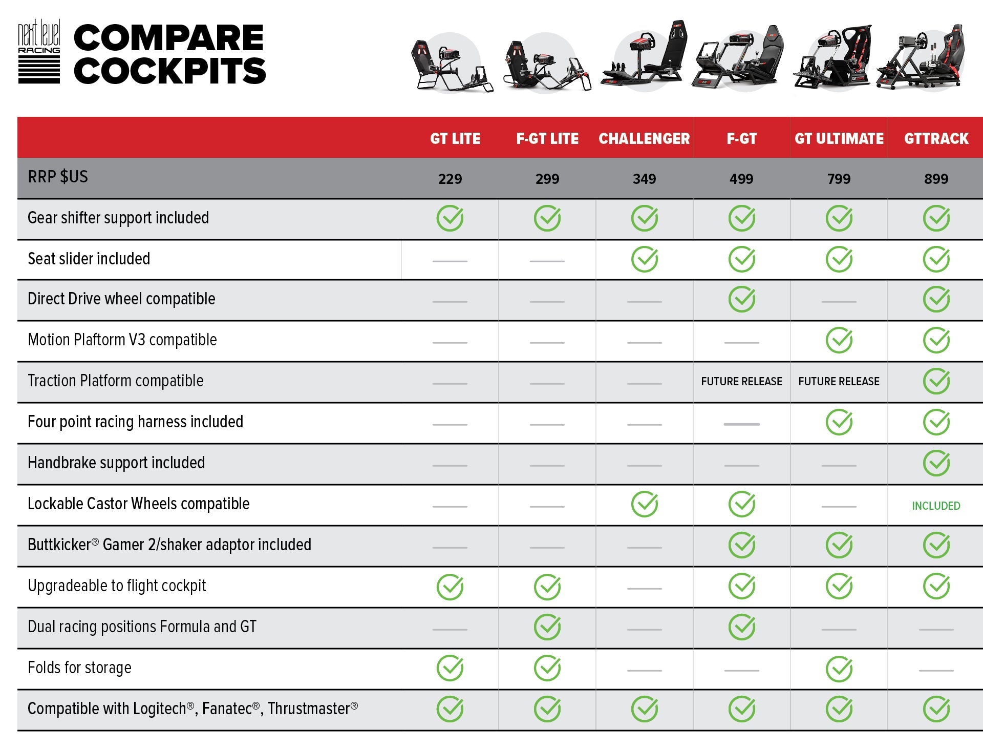 - Compatible with all major wheel and pedals and pre-drilled for Logitech, Thrustmaster, Fanatec